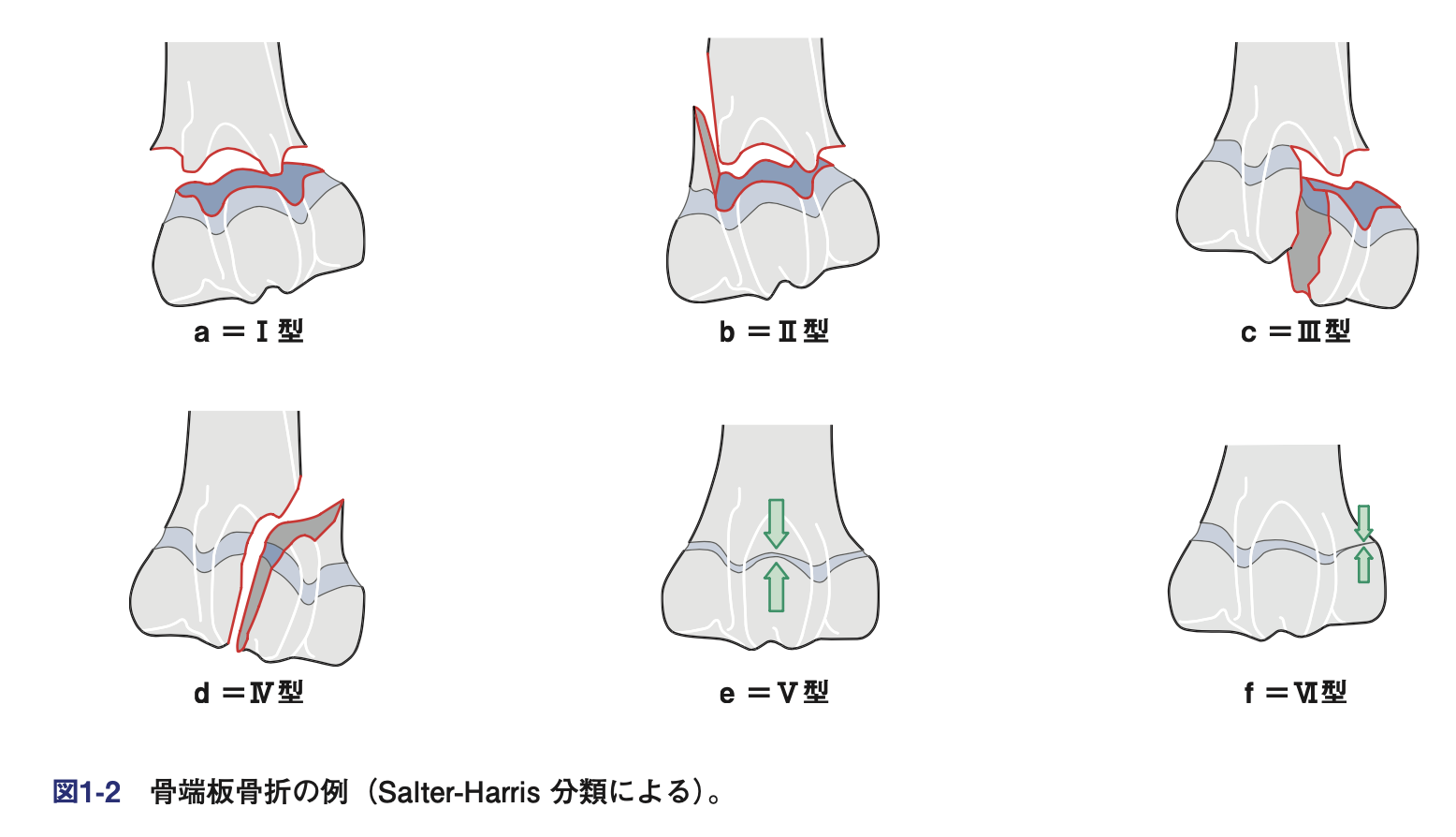 サルターハリス骨折は数字が上がるほど重症度が高くなります。5,6は圧迫により成長板が傷害されるタイプです。