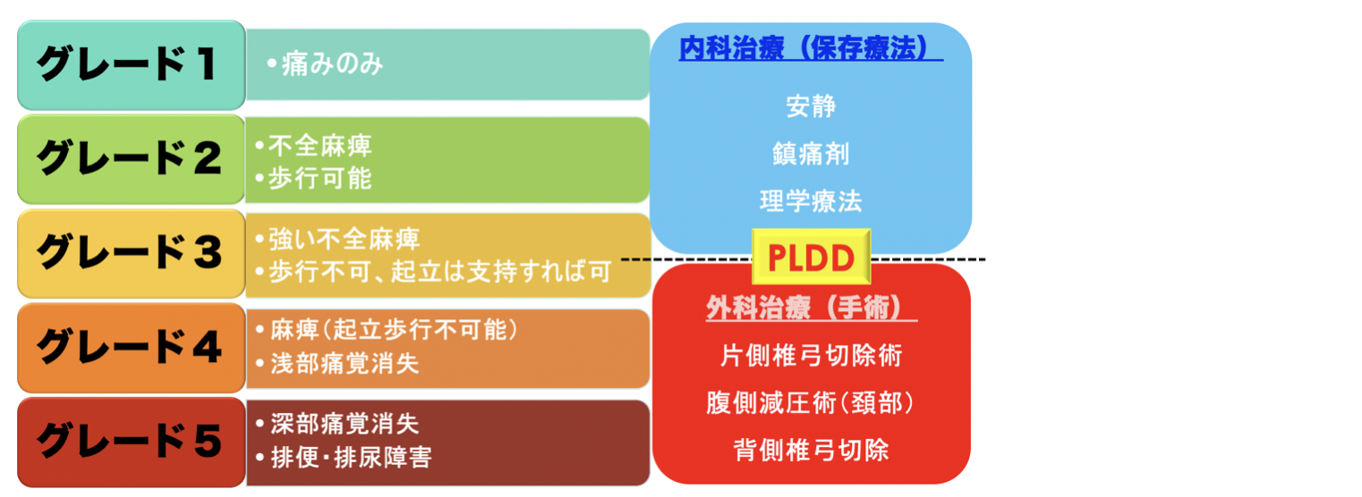 特にグレード3以上(足を動かすことができない麻痺がある状態)の重症の際は、飛び出した椎間板を摘出し脊髄圧迫を軽減する手術が行われます。
