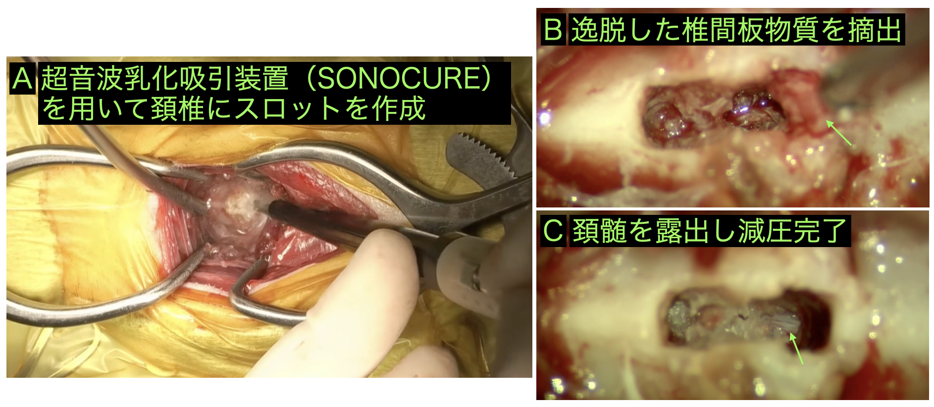 図4 腹側減圧術(ベントラルスロット形成術)の手術画像