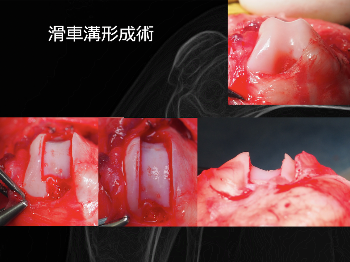 滑車溝形成術です。表面の軟骨を傷つけることなく、骨の中を削ることで高い壁を作成する術式です。