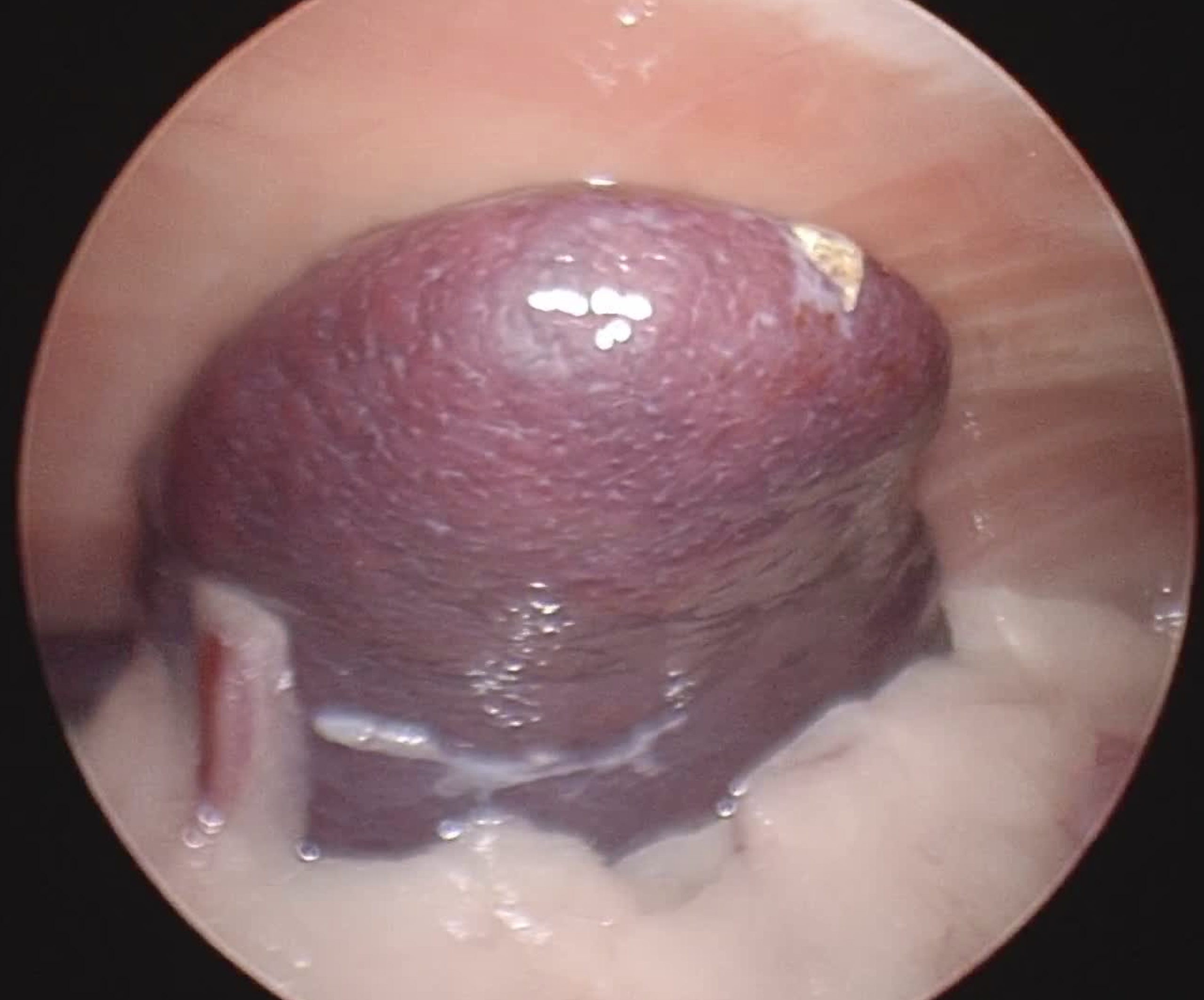 1枚目の写真は脾臓を示していて、腹腔鏡を用いることで肝臓以外の胆嚢や脾臓など周辺の臓器の確認、出血の程度なども観察しながら手術を行うことが可能です。