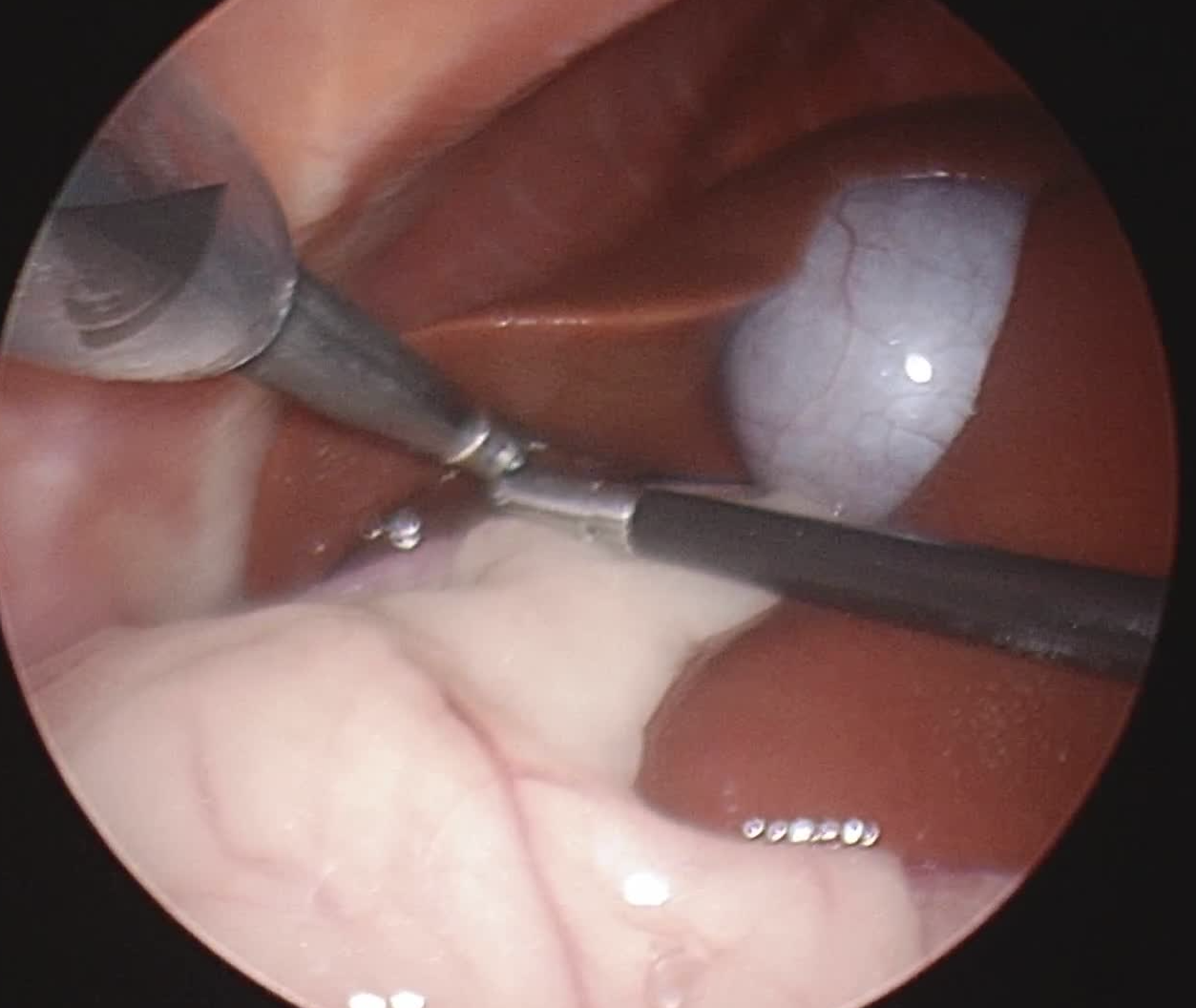 こちらは腹腔鏡を用いた肝生検の様子です。