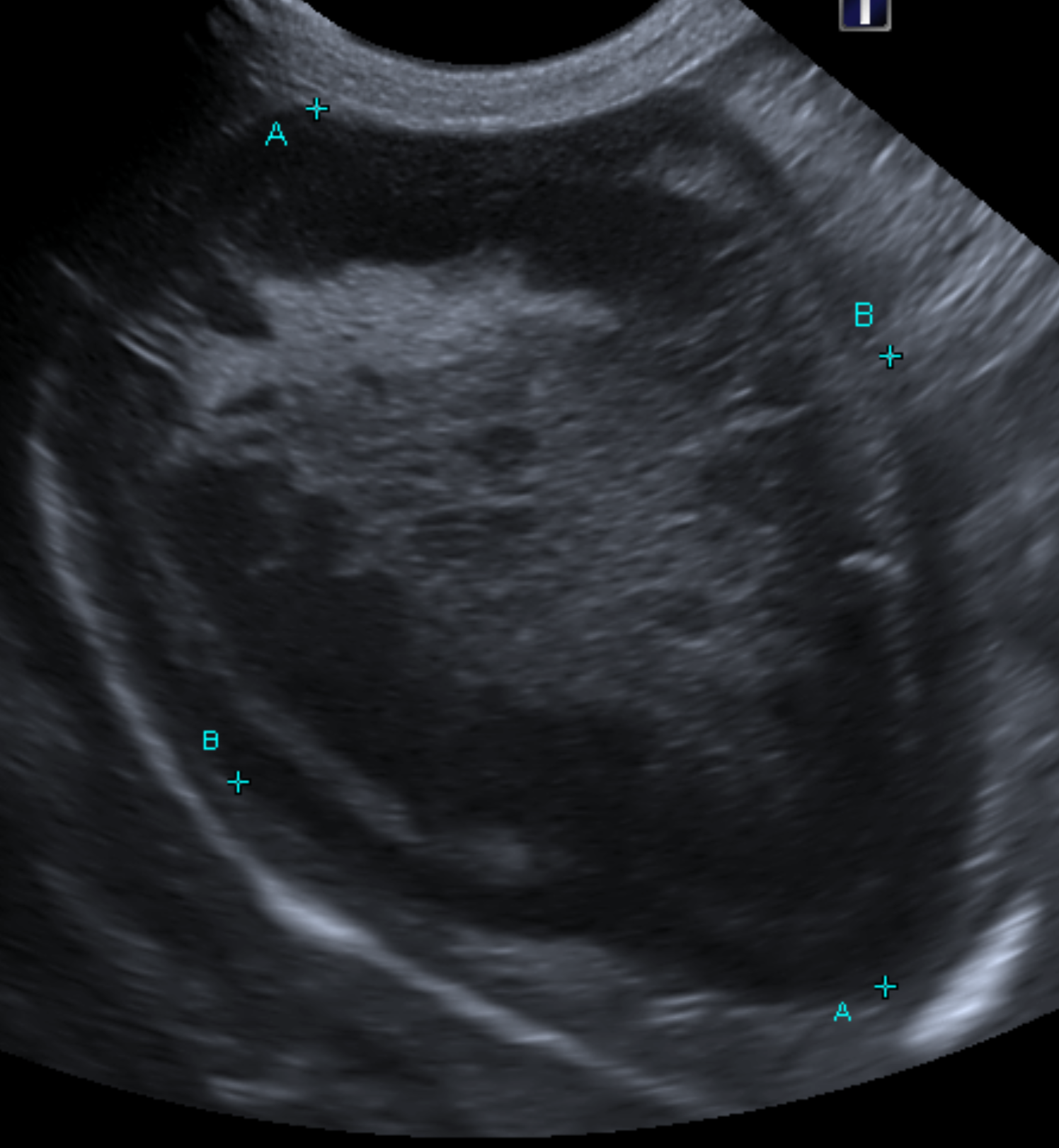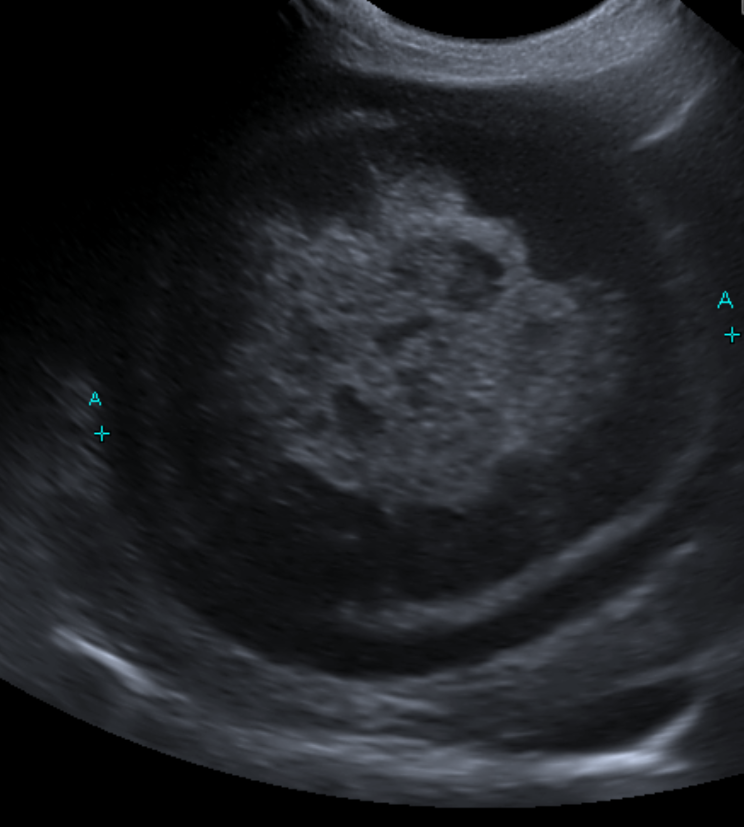 超音波画像を示します。こちらが典型的なキウイフルーツ様を示す胆嚢です。