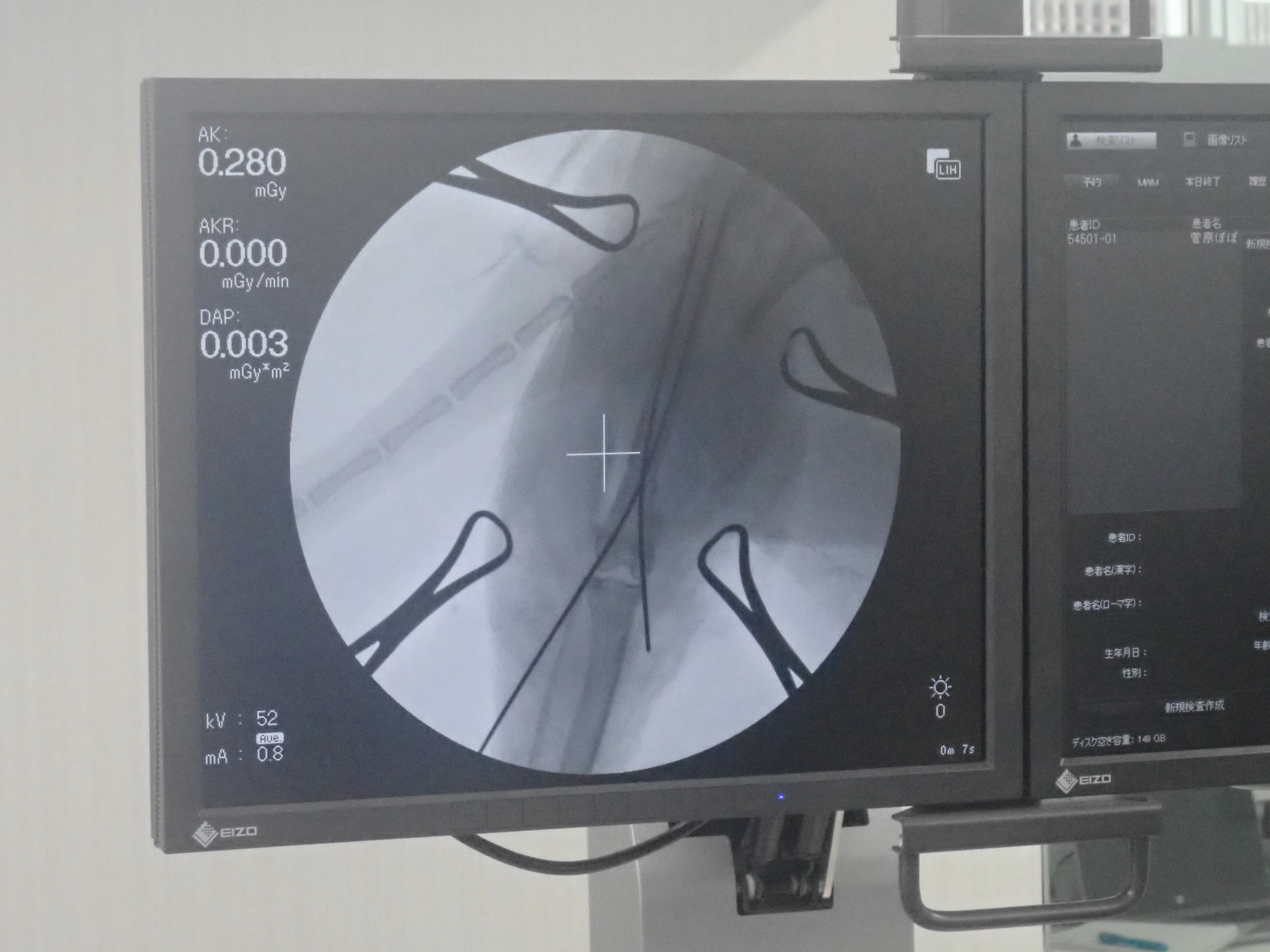 最初に髄内ピンを挿入してCアームという機械で確認しているところです。