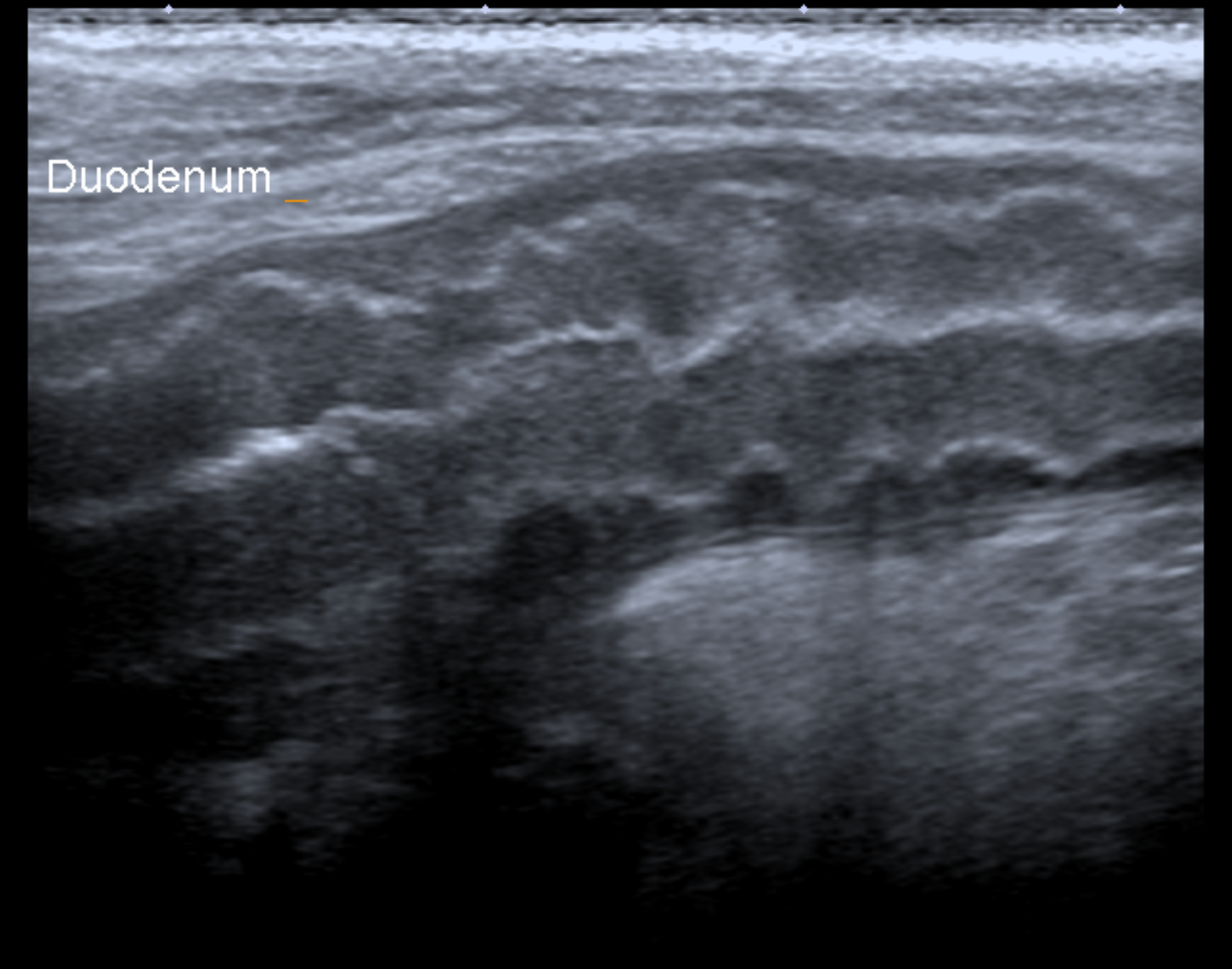 膵臓が炎症により高エコーとなりモヤモヤして見えるのが分かります。