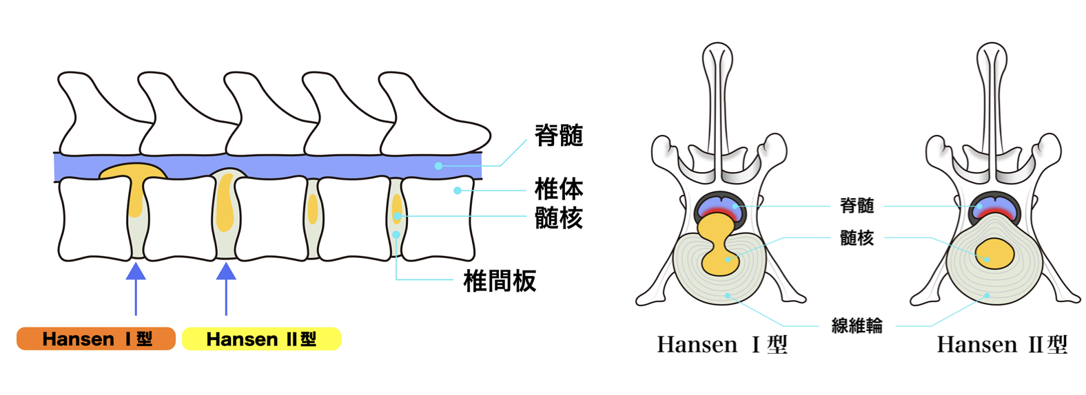 また、変性していない椎間板が外傷性に飛び出す特殊なタイプ(水和髄核の逸脱)もあります。