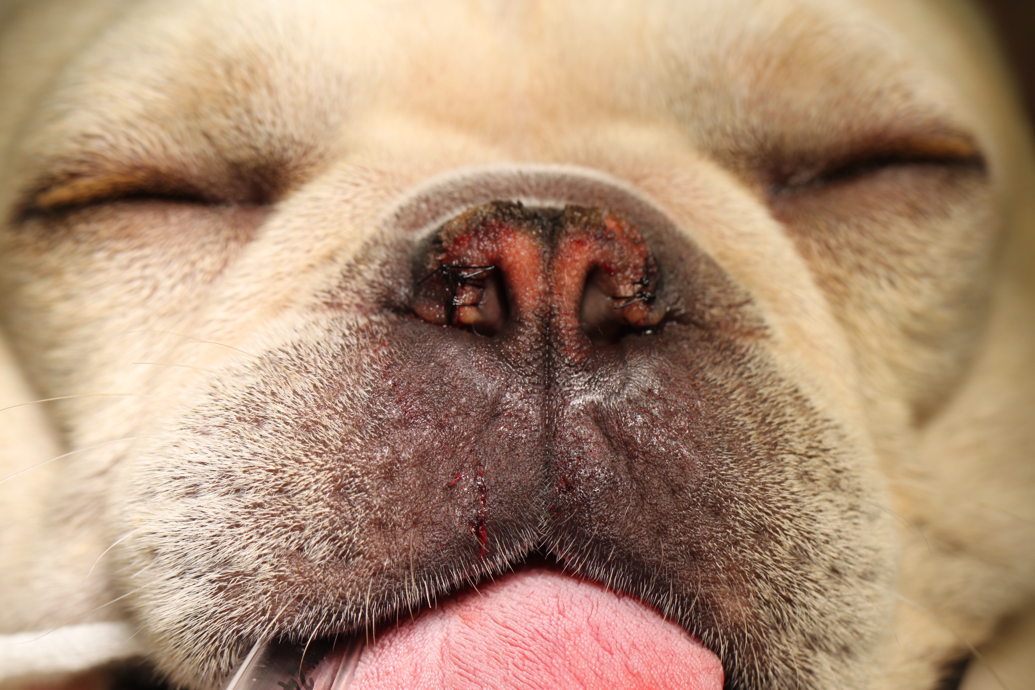 これらの犬種のこういった解剖学的構造に起因して生じる気道の閉塞障害を短頭種気道症候群といいます。